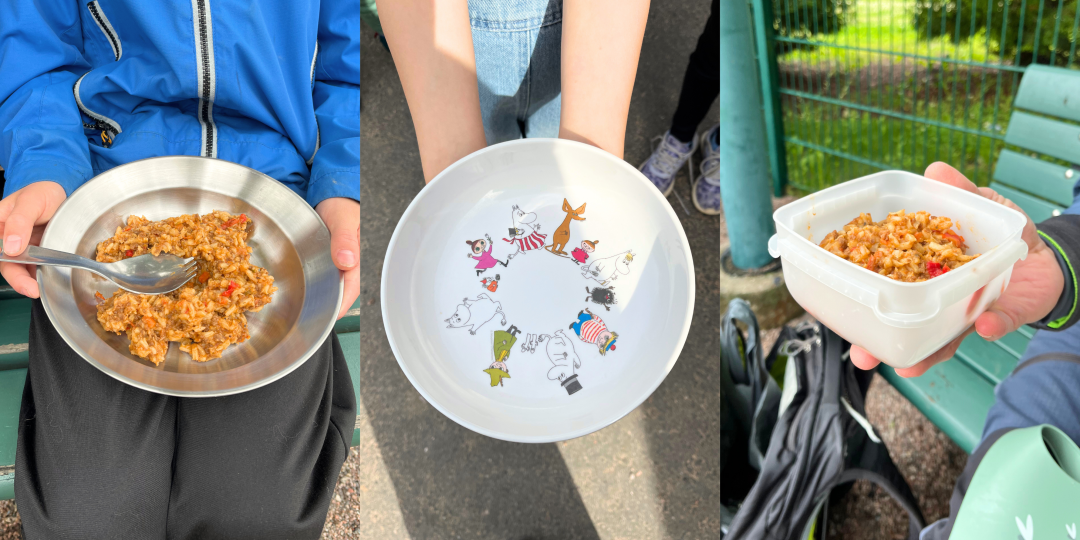 Puistoruokailuun tarvitsee ottaa mukaan oma lautanen ja lusikka. Lisäksi kannattaa pakata mukaan juomista.